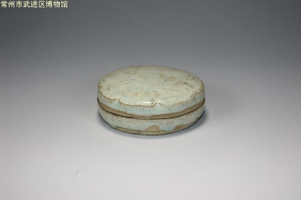 宋代影青刻花瓷盖盒 口径8、底径7.3、高2.5厘米。 盒盖子母口,平底。盖面坦平,呈八边葵形,刻有花卉纹。盖盒内外施青白釉,口沿及底无釉,露白胎,近底处有流釉现象。瓷盖盒胎质细腻,胎体轻薄,釉面光滑,造型秀美。