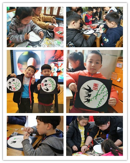 “绘春景”环节中,孩子们创作出一幅幅“春分雨霁,新燕双双”美术作品,并把它们带回家与爸爸妈妈们一起分享春分小知识。