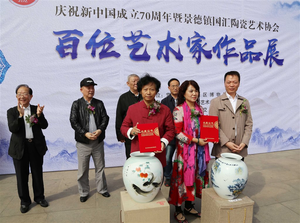 10月18日上午,“庆祝新中国成立70周年——景德镇国汇陶瓷艺术名家协会百位艺术家作品展”在武进博物馆开幕。常州市原副市长韩兆春、原副市长蒋星光、武进区文体广电和旅游局党组书记、局长李洪兴等相关领导,江西景德镇及常武地区瓷艺爱好者百余人参加开幕式。