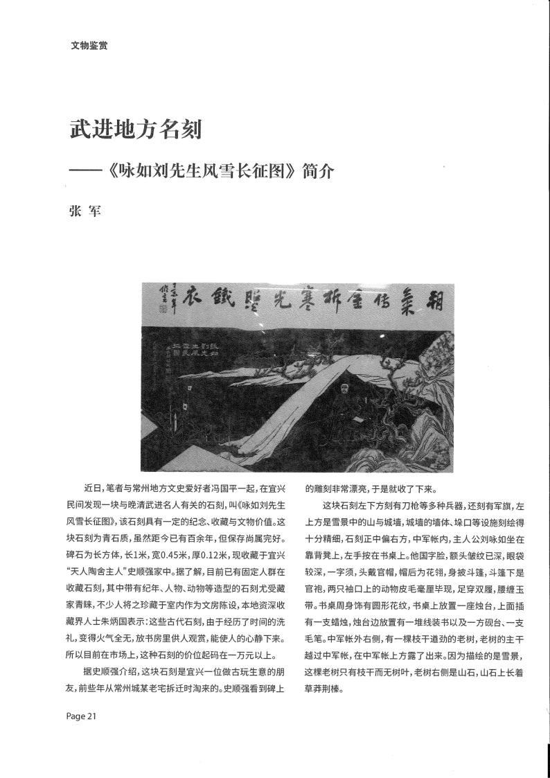 武进地方名刻——《咏如刘先生风雪长征图》简介
