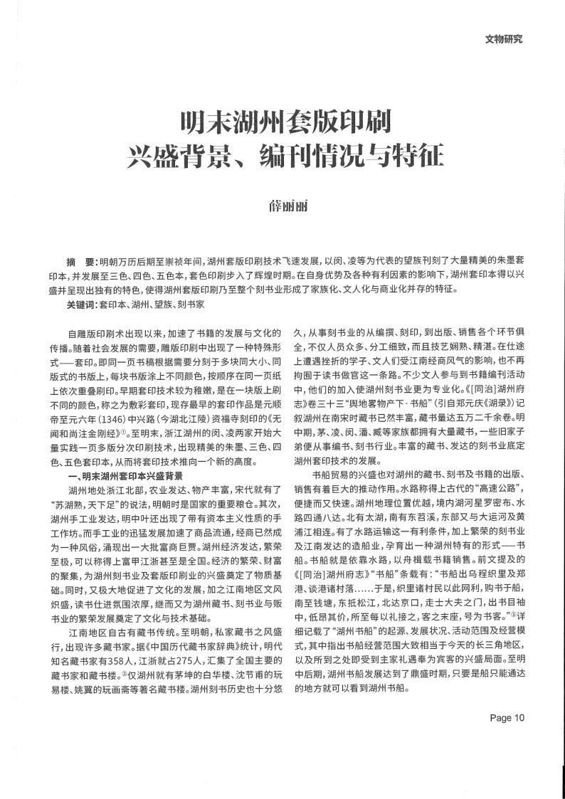 明末湖州套版印刷兴盛背景、编刊情况与特征