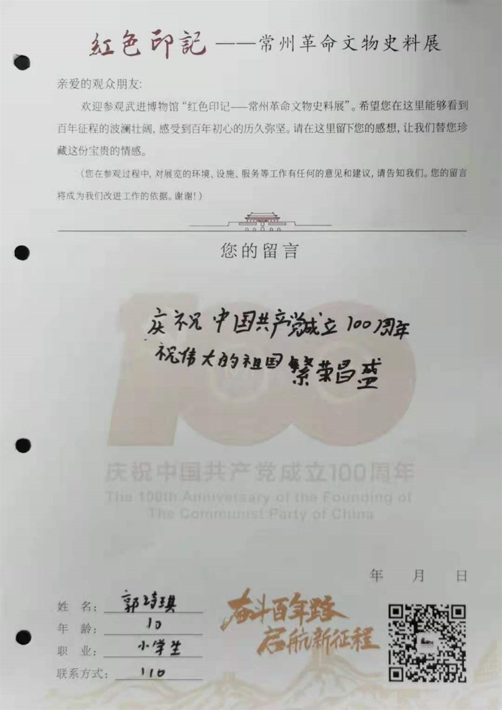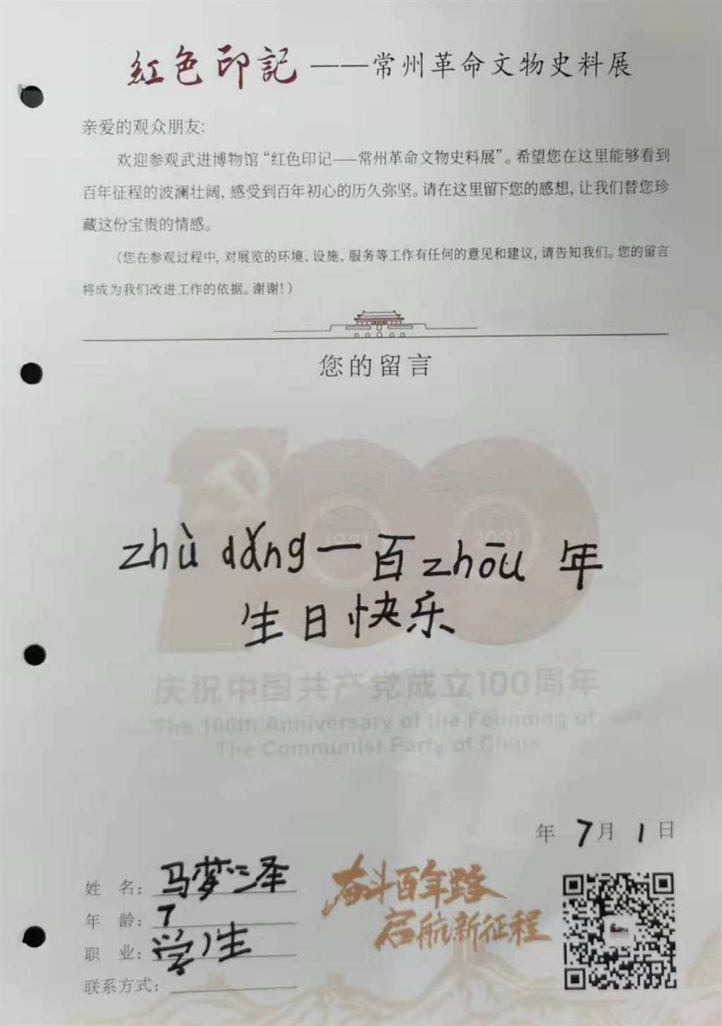 中国共产党已走过百年历程,今天,是她100周岁华诞,武进博物馆“红色印记——常州革命文物史料展”迎来了青少年参观热潮。