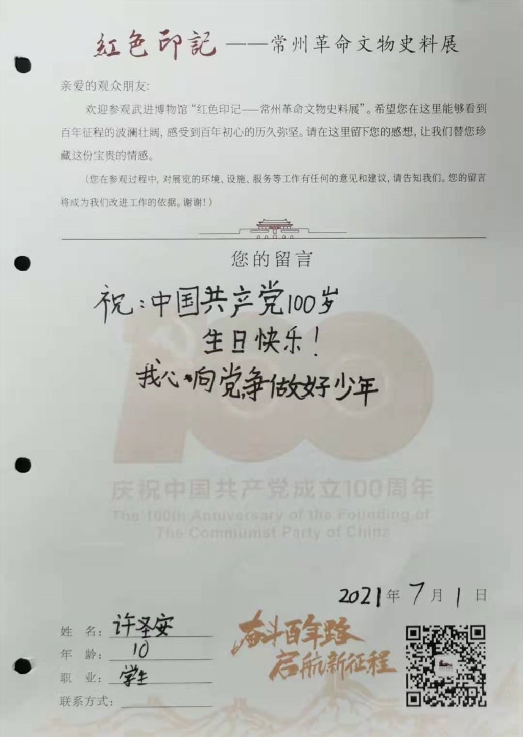 中国共产党已走过百年历程,今天,是她100周岁华诞,武进博物馆“红色印记——常州革命文物史料展”迎来了青少年参观热潮。