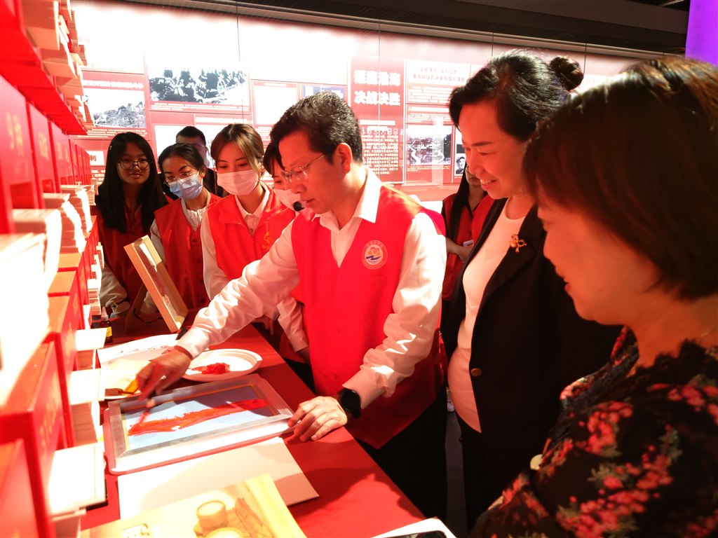 仪式结束后,常州市委常委、宣传部部长陈志良、江苏省委宣传部道德建设指导处副处长高嵩、常州市文明办副主任沈玉俊、常州市新闻出版局副局长钟芃、武进区委常委、宣传部部长薛红霞及市、区新时代文明实践中心建设联席会成员单位部分成员参观博物馆,在“人民的胜利——淮海战役纪念馆革命文物精品展”展厅,淮海战役纪念馆讲解员以精选的淮海战役纪念馆革命文物为核心,生动讲解了淮海战役的历史经过。参观结束后,陈志良对此次展览给予了高度的评价,他表示革命精神代代传,每一件红色展品背后都是坚定理想信念、加强党性修养的生动教材,我们要从中汲取智慧和力量,增强砥砺奋进的信心和勇气。