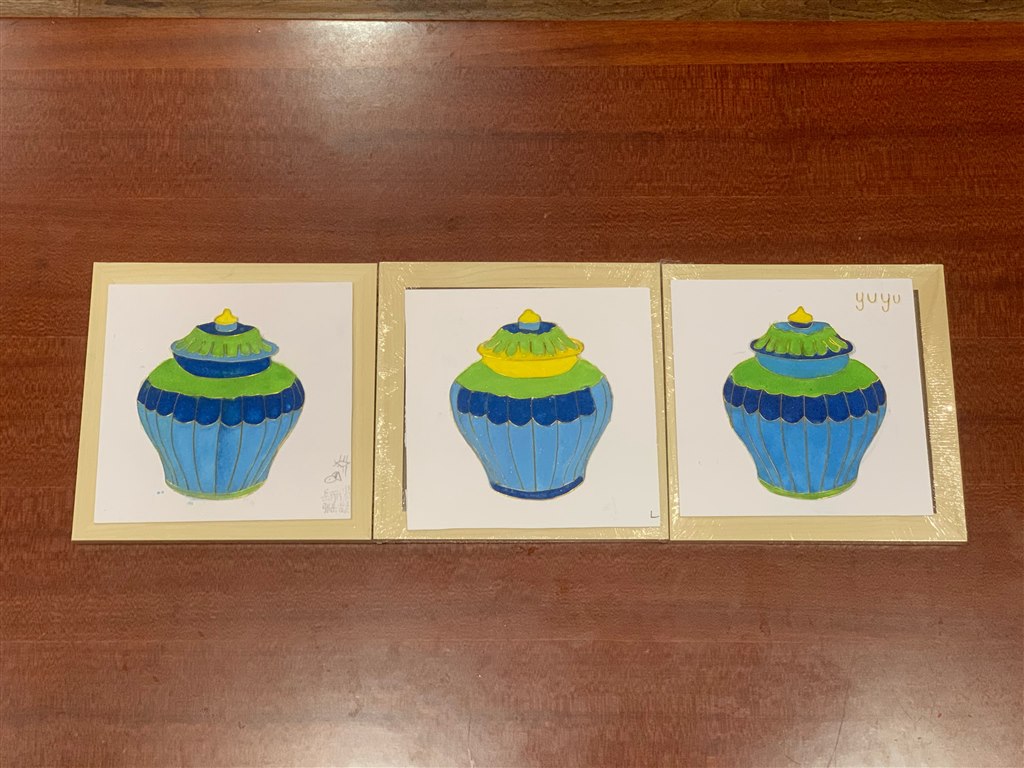 本次活动特结合武进博物馆馆藏明代文物“孔雀绿釉陶盖罐”,以讲解与科普相结合的形式,生动有趣地向大家介绍了景泰蓝的历史和掐丝制作技术。在纺院老师的指导下,大家一步步地进行掐丝、捋丝、剪丝、上色、平整处理、固定画面……在掐丝珐琅画的制作,感受历史文物与传统文化的魅力。