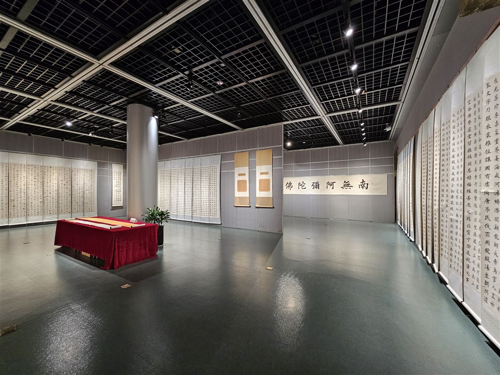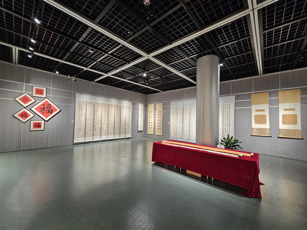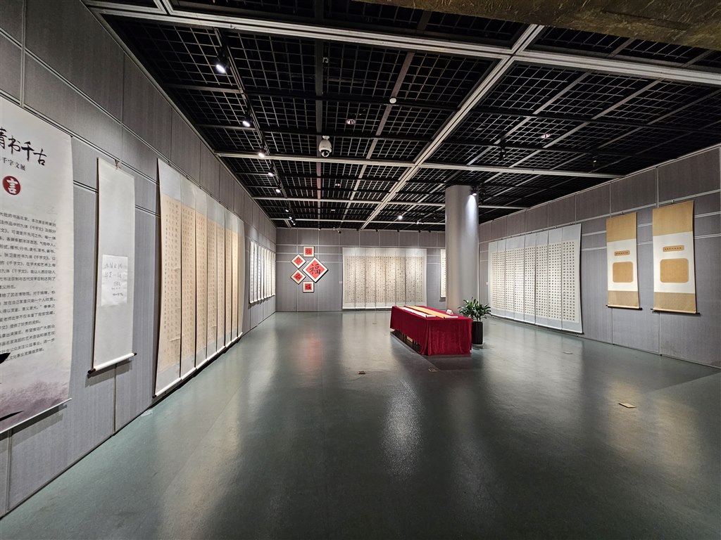 《千字文》涵盖了天文,地理,自然,社会,历史等多方面的知识,四字一句,文辞优美,对仗工整,平白如话,易诵易记,是中国影响深远的儿童启蒙经典。本次展览将展出狄卫星老师捐赠我馆12套90件书法作品中的九体《千字文》及部分近期新作。狄卫星老师的九体《千字文》,可谓是开先河之作。每一体都用八尺条屏书成,洋洋洒洒,气势夺人。其形式,楷书、行书、隶书、草书、篆书、魏碑、行草、章草、甲骨文各体皆优。
