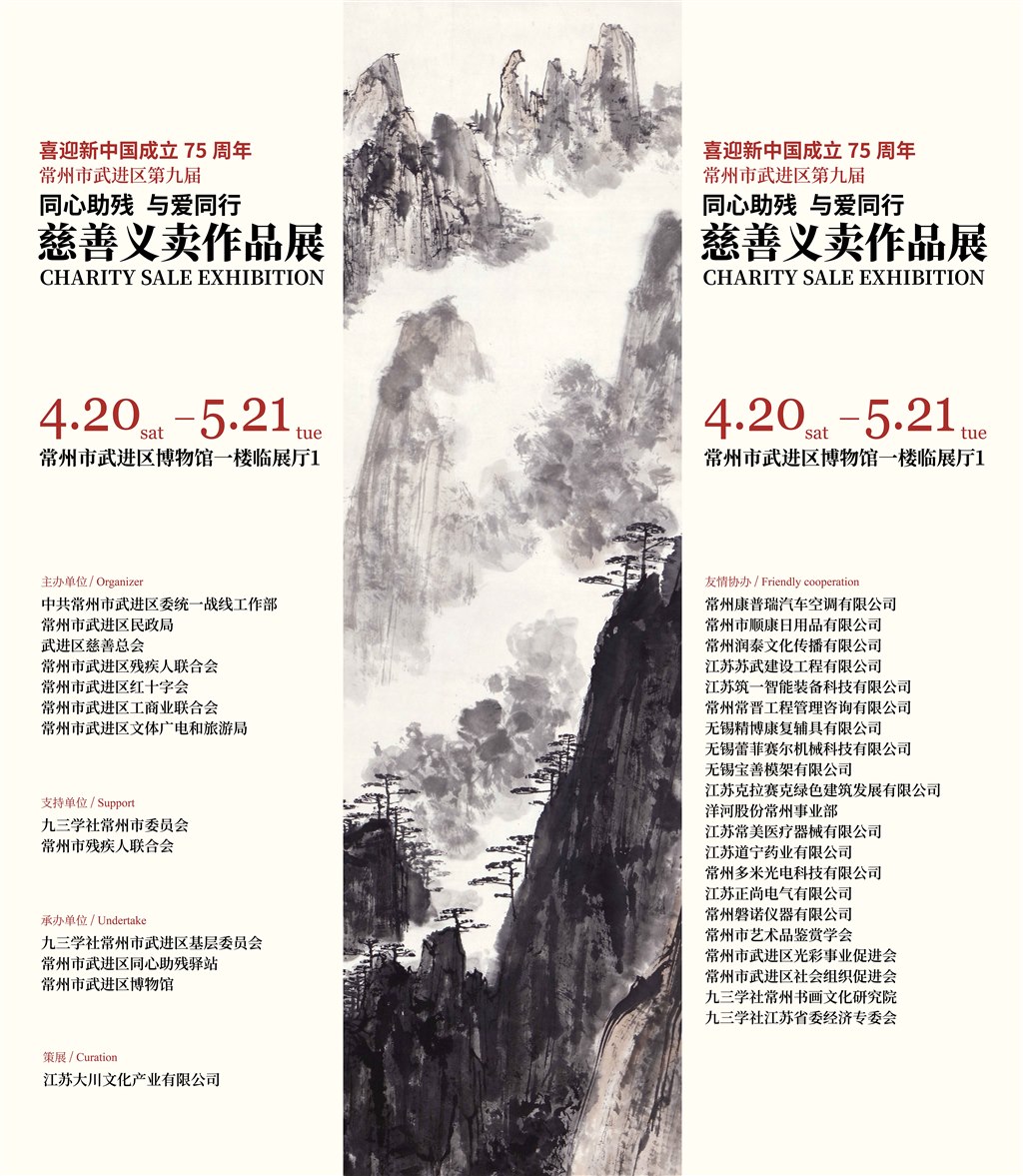 本次慈善义卖活动得到了许多艺术家、学者及社团的支持。义卖展陈精品佳作良多,共有亚明、王亚平、范桦等50位艺术家的75件作品。为了更好地彰显社会各界,特别是艺术家对残疾人工作的关爱,主办方、支持方、承办方决定,在第34个全国助残日到来之际举办常州市武进区第九届“同心助残与爱同行”慈善义卖作品展,供机关企事业单位、中小学校、爱心人士等社会各界欣赏。期待展览对各单位学习贯彻习近平新时代中国特色社会主义思想主题教育活动有所启发。